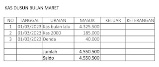 LAPORAN KAS PADUKUHAN BALAK BULAN MARET 2023